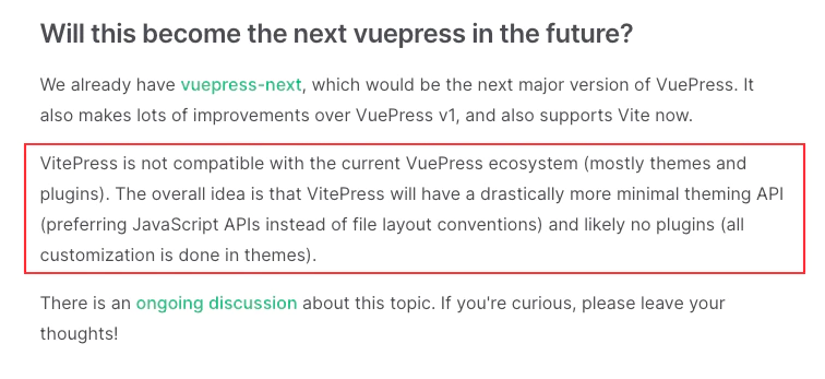 恰好此时 VitePress 也比较成熟了(alpha),相比 VuePress 更加的简洁,可玩性强,上手成本也低。