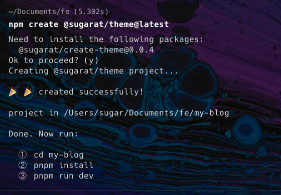 npm create @sugarat/theme@latest my-first-blogsh