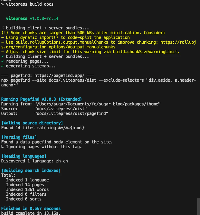 // 如果npx pagefind 时间过长,可以手动将其安装为项目依赖 pnpm add pagefind
